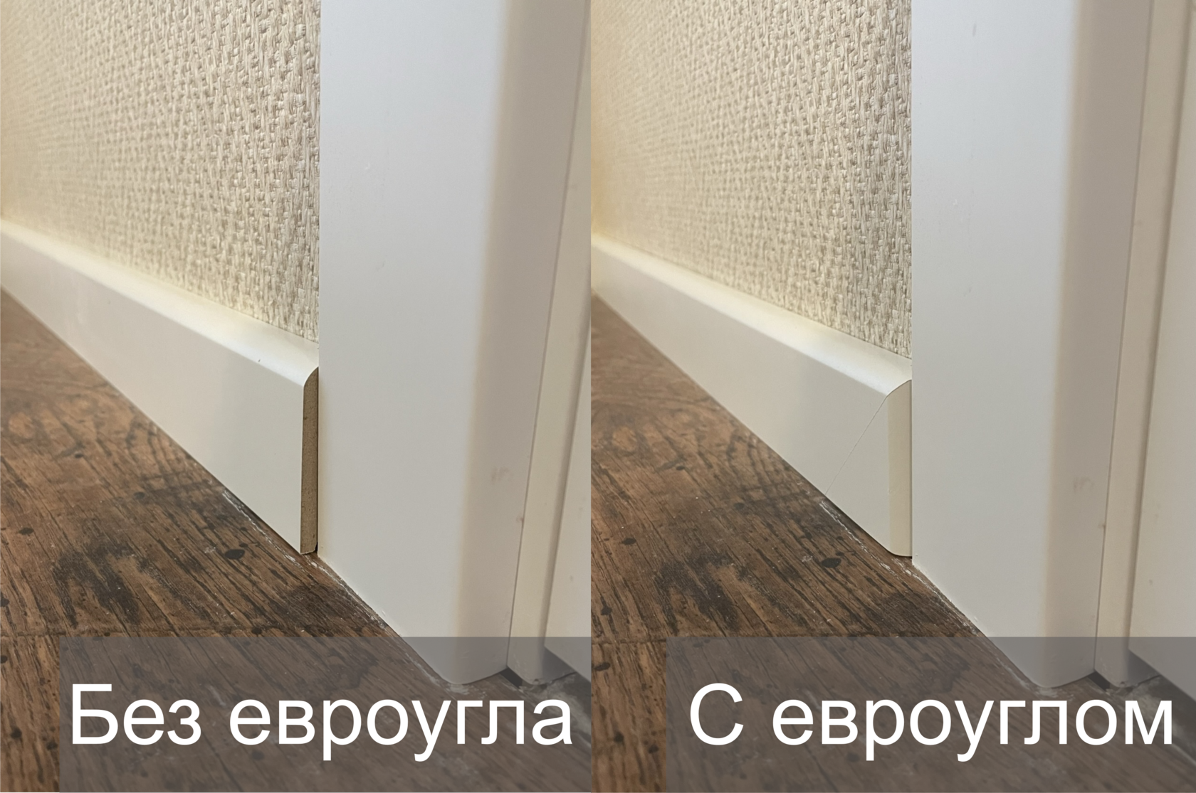 Часто приходится сталкиваться с тем, что пилить плинтус предлагают на лестничной площадке, на балконе, или на участке под навесом. Или вообще напилить плинтус в цехе, потом приехать и быстро установить. Зачем? Чтобы не было пыли…